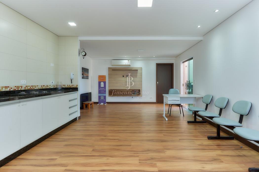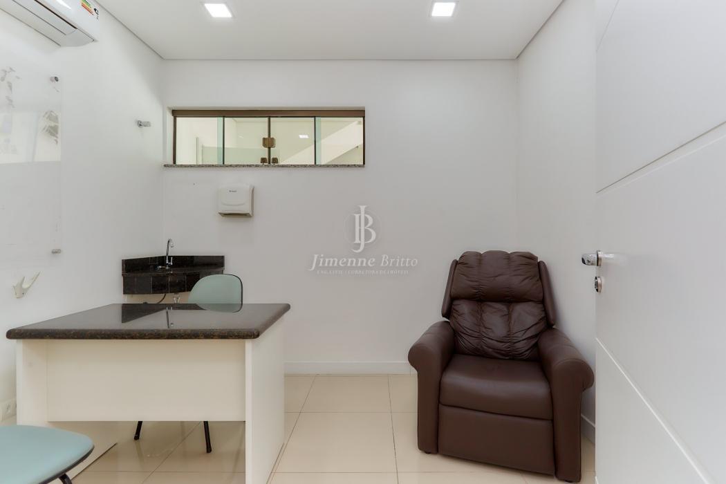 Com 327 m² de área privativa, o imóvel é distribuído em dois pavimentos. No térreo, há uma recepção acolhedora, dois banheiros, três salas projetadas para atendimento individual, uma sala de reunião, câmara fria, um espaço kids especialmente pensado para as crianças e uma área de serviço. No segundo pavimento, o imóvel conta com quatro salas amplas, uma copa, cozinha, churrasqueira e lavanderia, proporcionando tanto funcionalidade quanto conforto.
