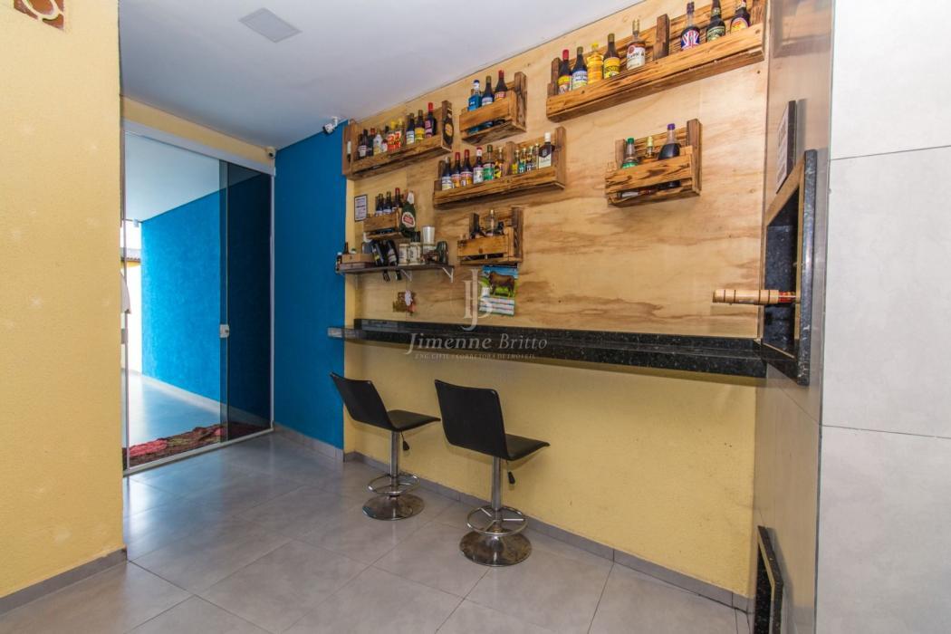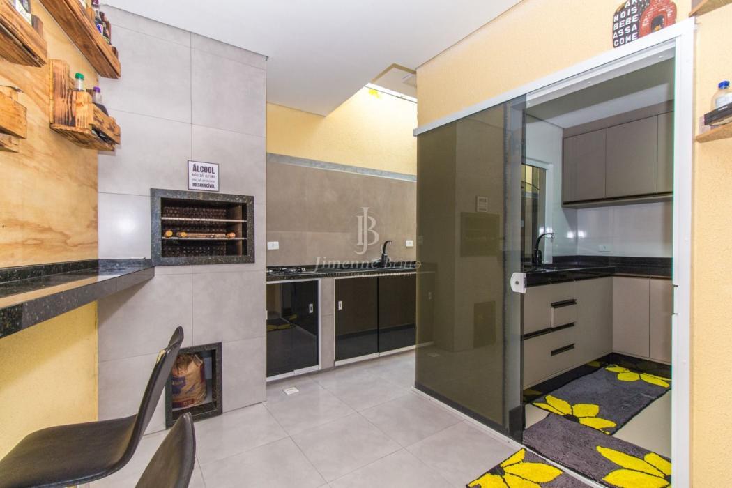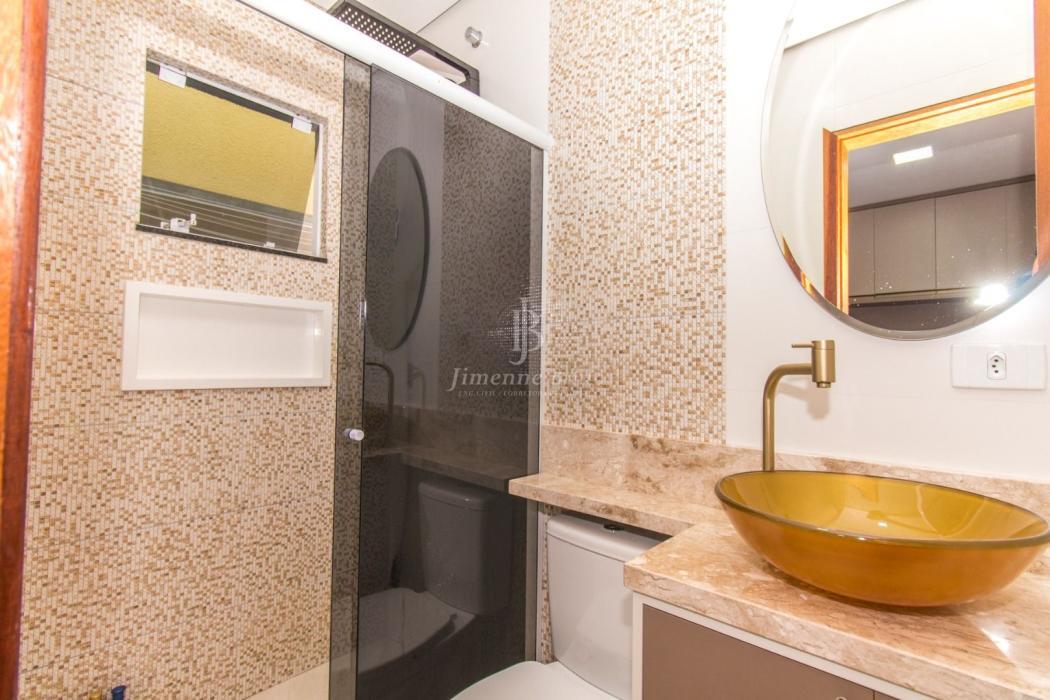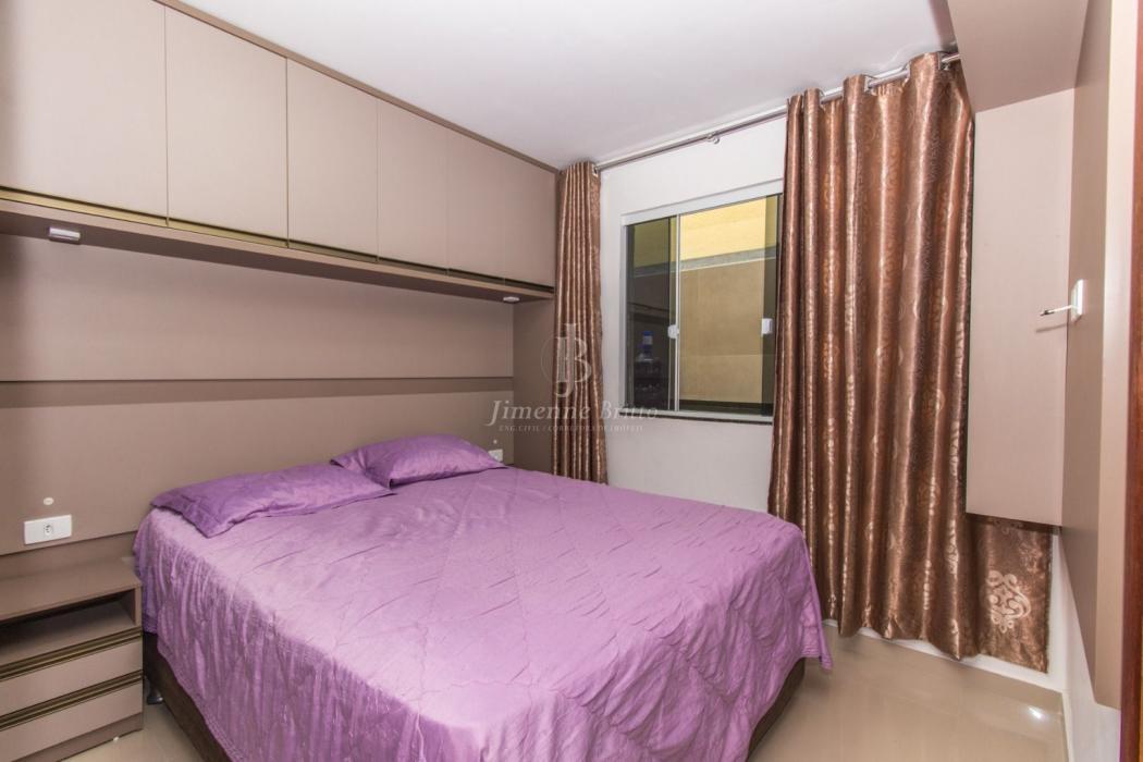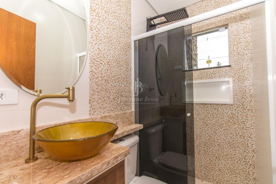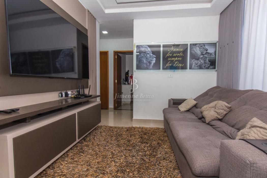 A casa dispõe de cozinha com armários planejados, banheiros com armário, espelho e box em vidro, piso porcelanato em todo o imóvel, dois dormitórios principais com móveis planejados.
