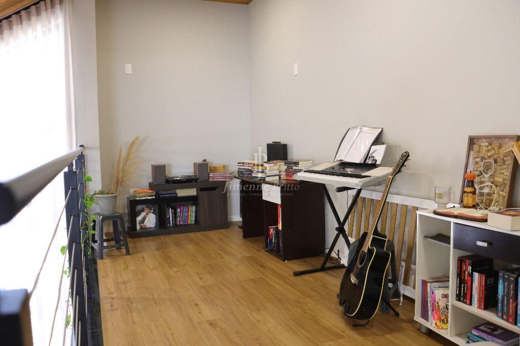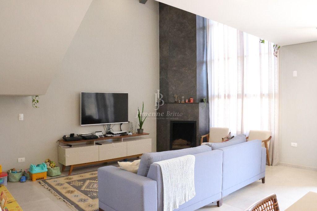 Uma sala aconchegante com lareira, espaço de jantar, pé direito duplo vista para um mezanino onde você pode usar a criatividade, uma biblioteca, um escritório espaço de música, enfim... você terá a melhor escolha que combine com você!