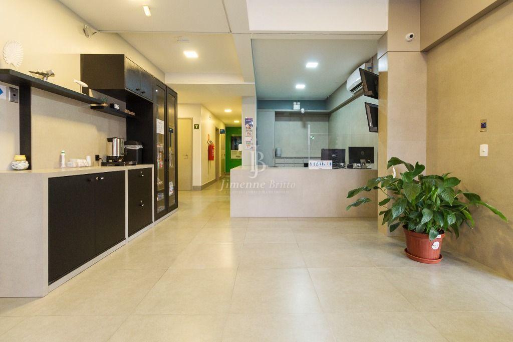 No piso térreo conta com área de recepção, lavanderia, área de estar, área para fumantes, banheiro, sala de rouparia, sala de estoque diversos. 01 elevador que atende todos os pisos, da marca ThyssenKrupp, com capacidade para até 08 pessoas.
