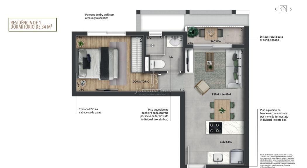 | Área privativa | 34,00 m² |