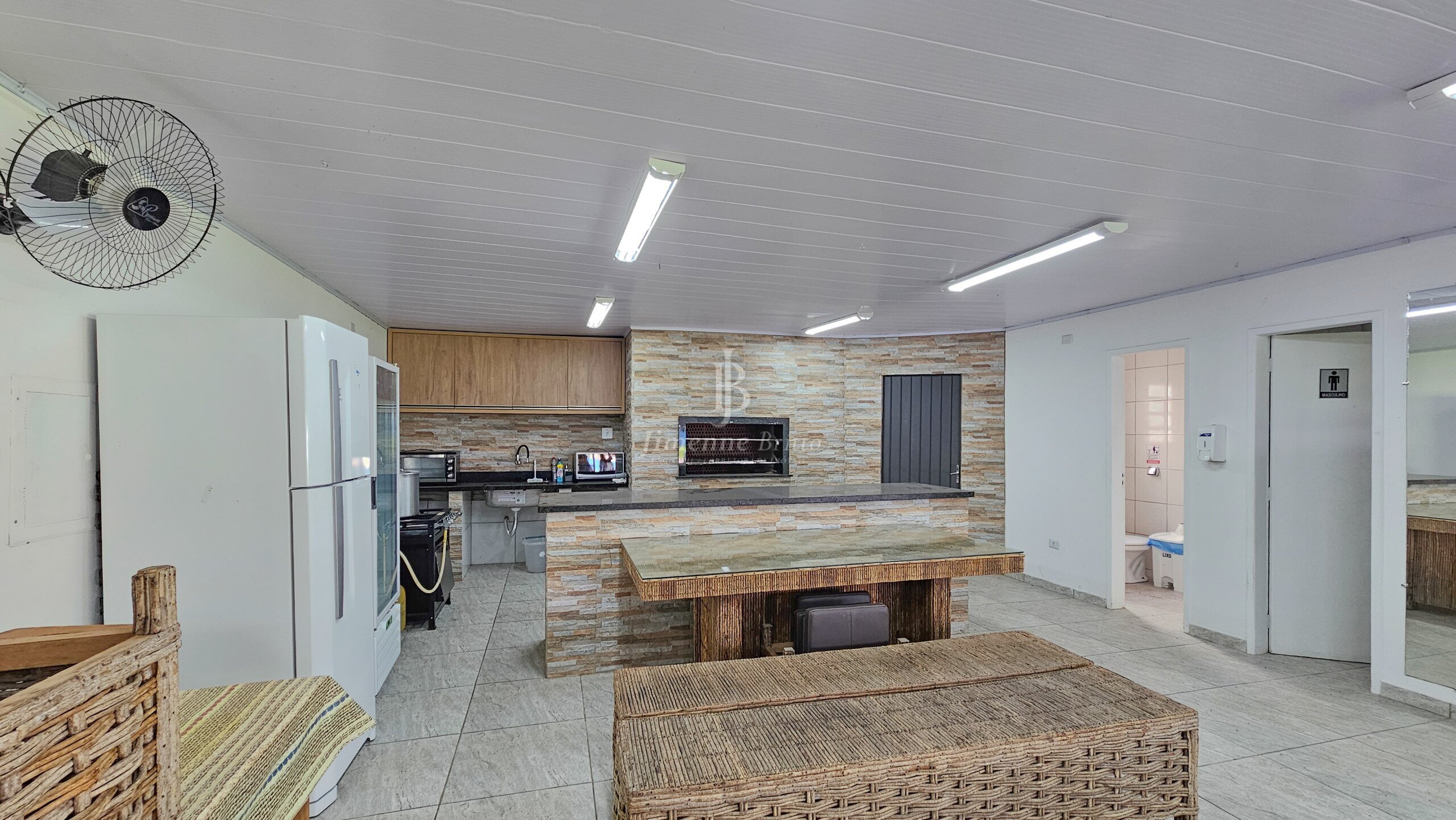Possui acesso interno asfaltado, refeitório com churrasqueira, banheiros, vestiário, casa para zelador e um belo campo de futebol plano e com grama natural.